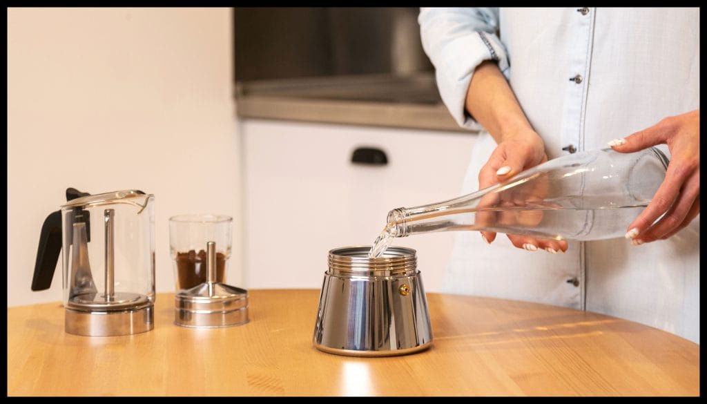 W przypadku kuchenki elektrycznej warto wcześniej podgrzać palnik – skróci to czas oczekiwania. Bardzo ważne – moc grzania powinna być średnia lub niska (poniżej połowy maksymalnej mocy)! Należy unikać gwałtownego wzrostu temperatury, ponieważ prowadzi to do nadmiernego ciśnienia, które „przypala” kawę i psuje smak.